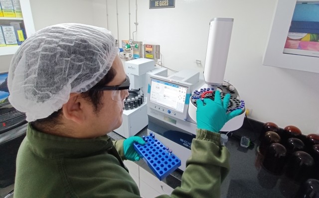 Juan Carlos Garcia, Supervisor de Instrumentación en Calox Vitapharma, haciendo estudios de Cromatografía de gases.