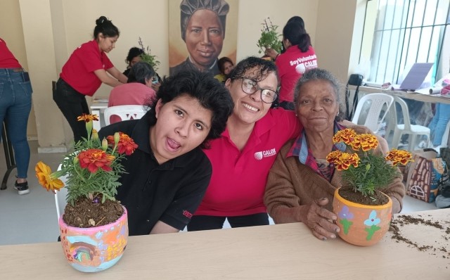 Durante la jornada de responsabilidad social empresarial, nuestro grupo de voluntarios participó en diversas actividades significativas como la limpieza de áreas comunes, preparación y disfrute de un almuerzo de integración, pintura de macetas y siembra de plantas. Estas acciones no solo embellecieron los espacios del albergue, sino que también promovieron un entorno terapéutico y de relajación que refuerza las habilidades psicomotrices de las residentes, aportando a su desarrollo emocional y social.